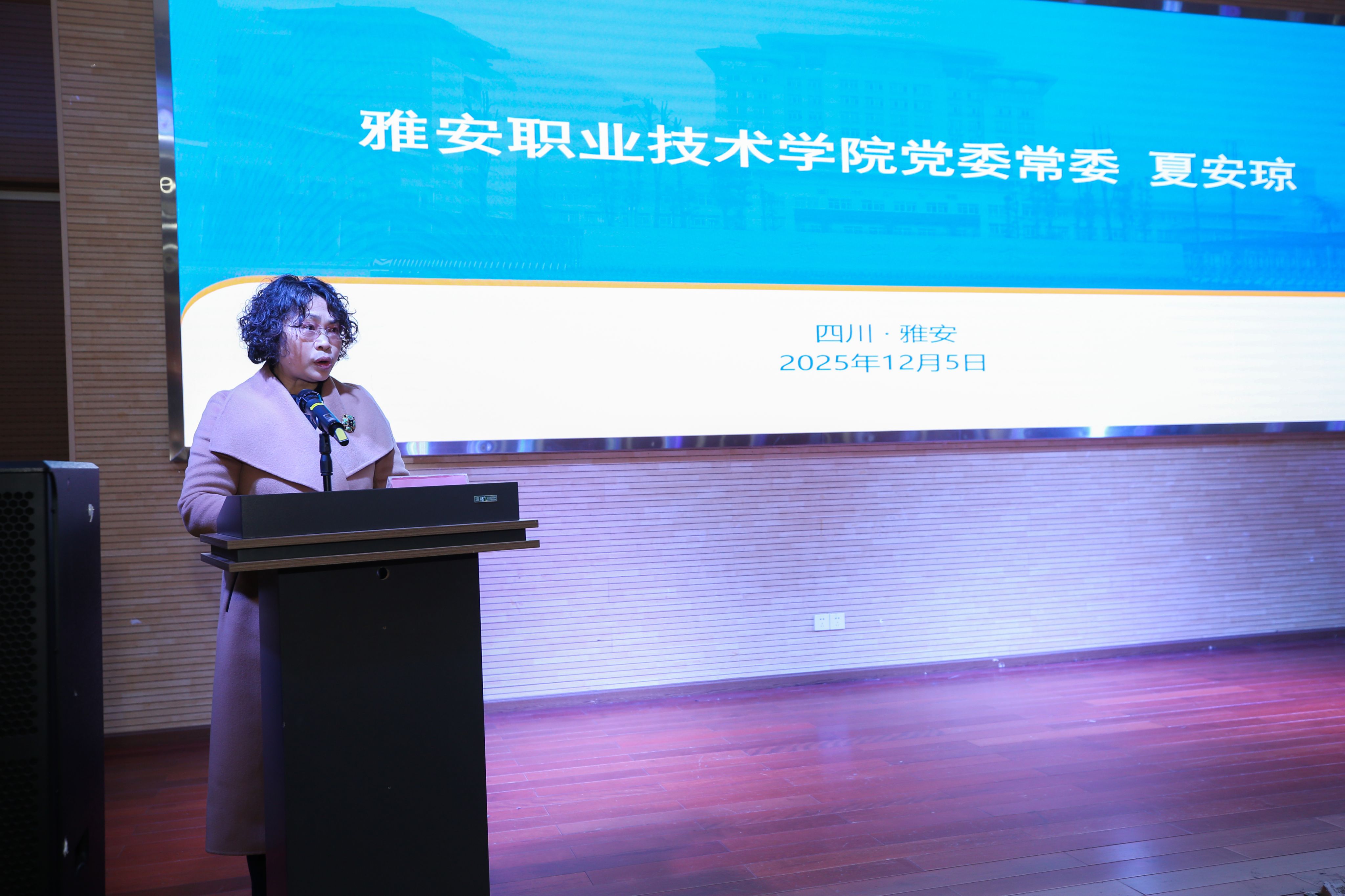 会上,党委常委、宣传统战部部长、工会主席夏安琼代表学校致辞,结合当前教育与文化发展的现实需要,阐述了晏阳初精神的时代内涵与实践价值。她指出,晏阳初先生是我国近现代具有世界影响力的教育家,其“除天下文盲,作世界新民”的教育理想与乡村建设实践,至今仍熠熠生辉、启迪后人,分会的成立不仅是晏阳初教育思想在雅安落地生根的重要标志,也为推动本地教育研究与乡村振兴提供了新的平台。她表示,学校作为一所地方高校,决不辜负大家的信任,在支持好服务好分会日常会务的同时,将进一步整合分会与学校牵头的区域职教联盟的力量,发挥人才优势,汇聚智慧,为教育强省发挥积极作用。