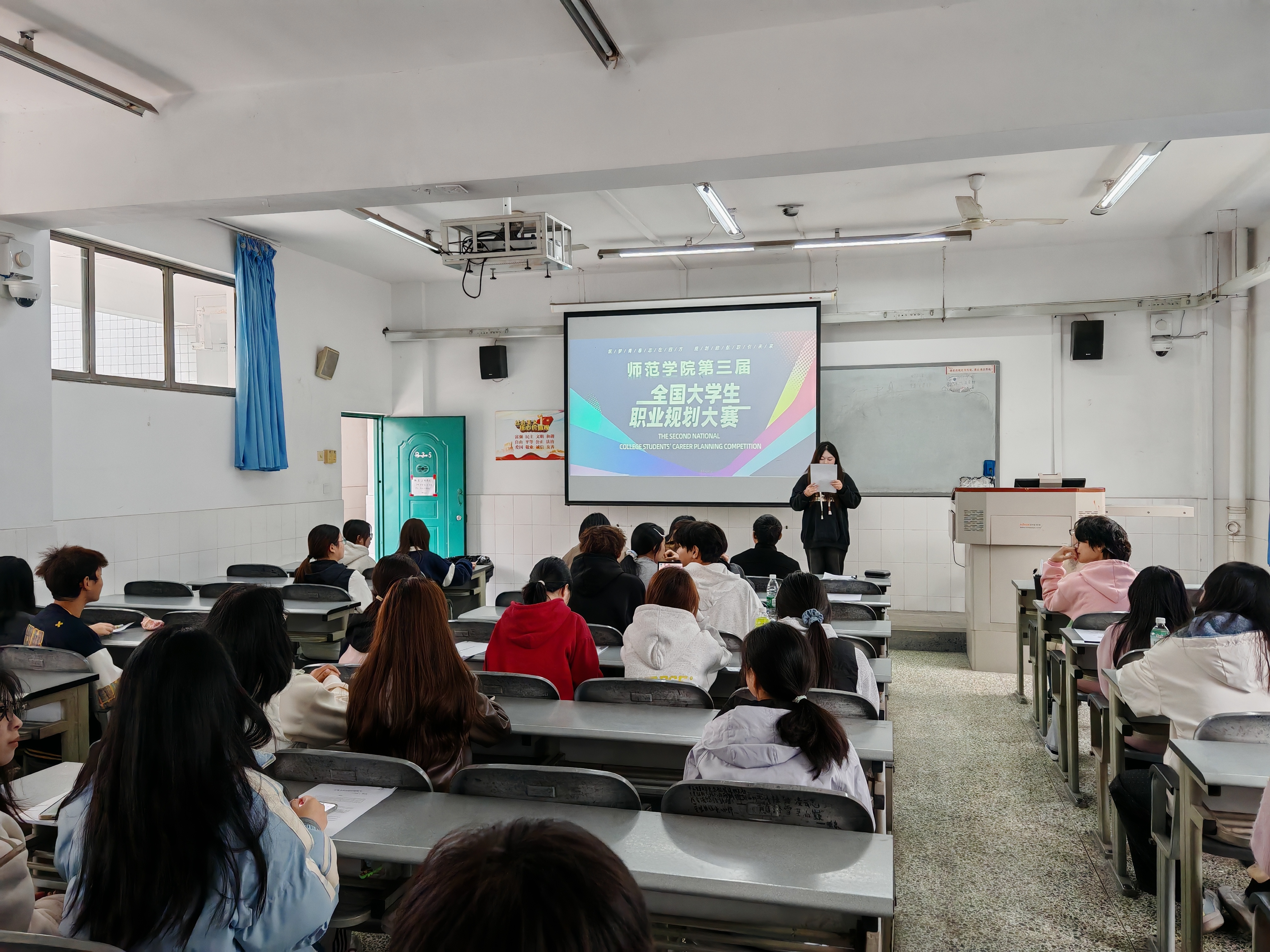 为引导师范生科学合理地规划大学学业与职业发展,11月11,由师范学院主办、师道明途工作室承办的第三届职业规划大赛于日下午在青年路校区B305教室成功举办。师范学院党总支副书记尹雪智到场参加,工作室成员石慧慧、左习成老师,就业指导教师陈婷婷、徐挺等4人担任大赛评委,2024级、2025级共17名选手同台竞技,部分学生在现场进行了观摩学习。