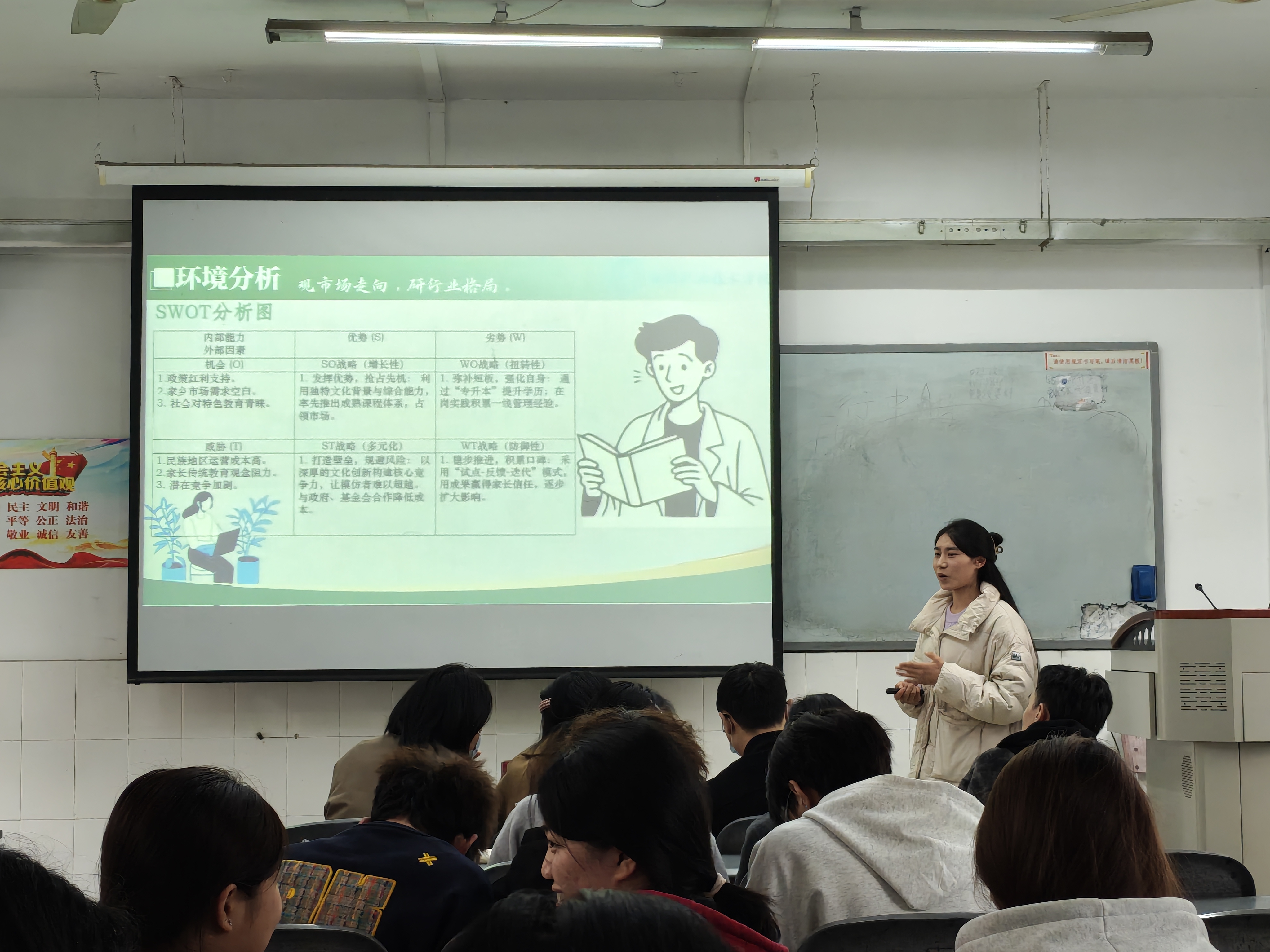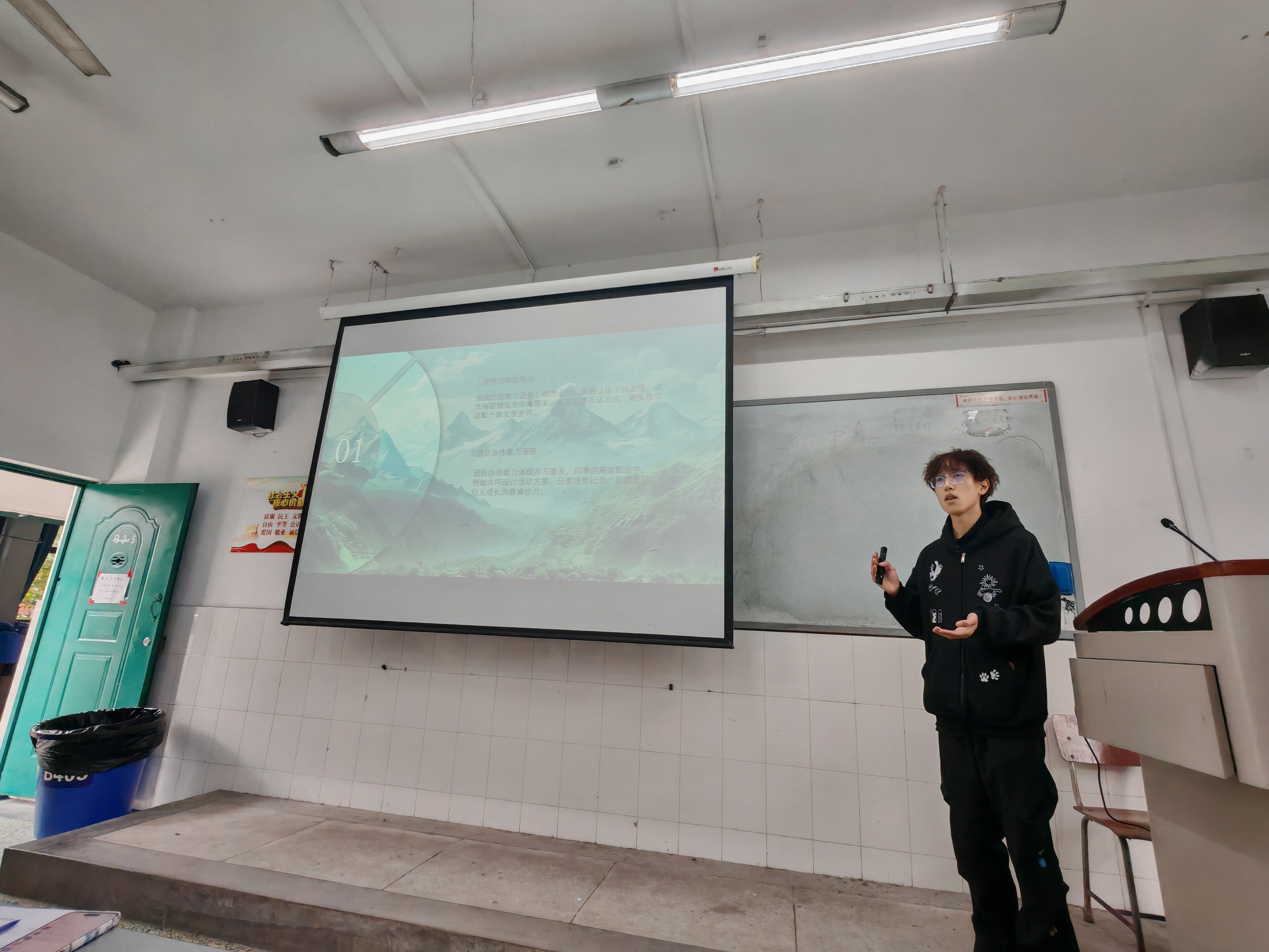 点评环节中,石慧慧老师从“师范生专业成长五阶段”出发,勉励大家保持终身学习意识,在持续反思与修正中实现阶梯式成长。左习成老师则结合就业市场数据,提醒同学们关注教育政策与行业趋势,增强风险意识与应变能力,并作总结发言。