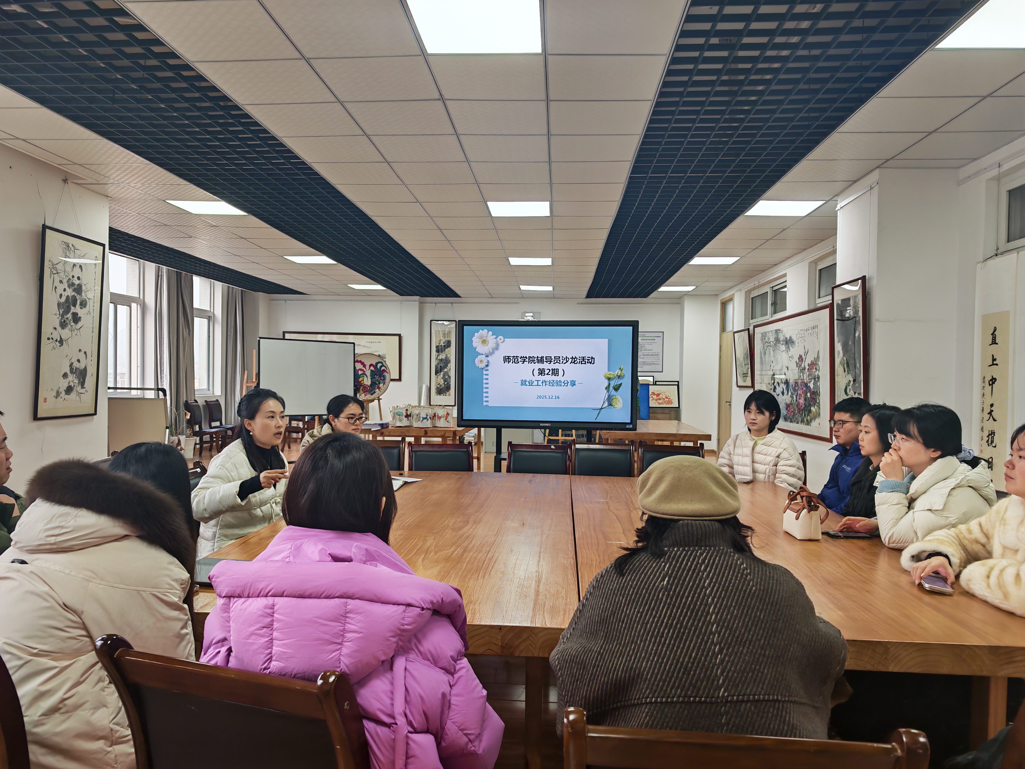 为落实高校毕业生就业工作部署,进一步提升就业指导服务水平,12月16日,师范学院组织开展了以就业为主题的辅导员沙龙活动。学院党总支书记叶芋伶、副书记尹雪智,全体辅导员及班主任参加活动。学生处副处长张晓惜应邀参加并作指导。