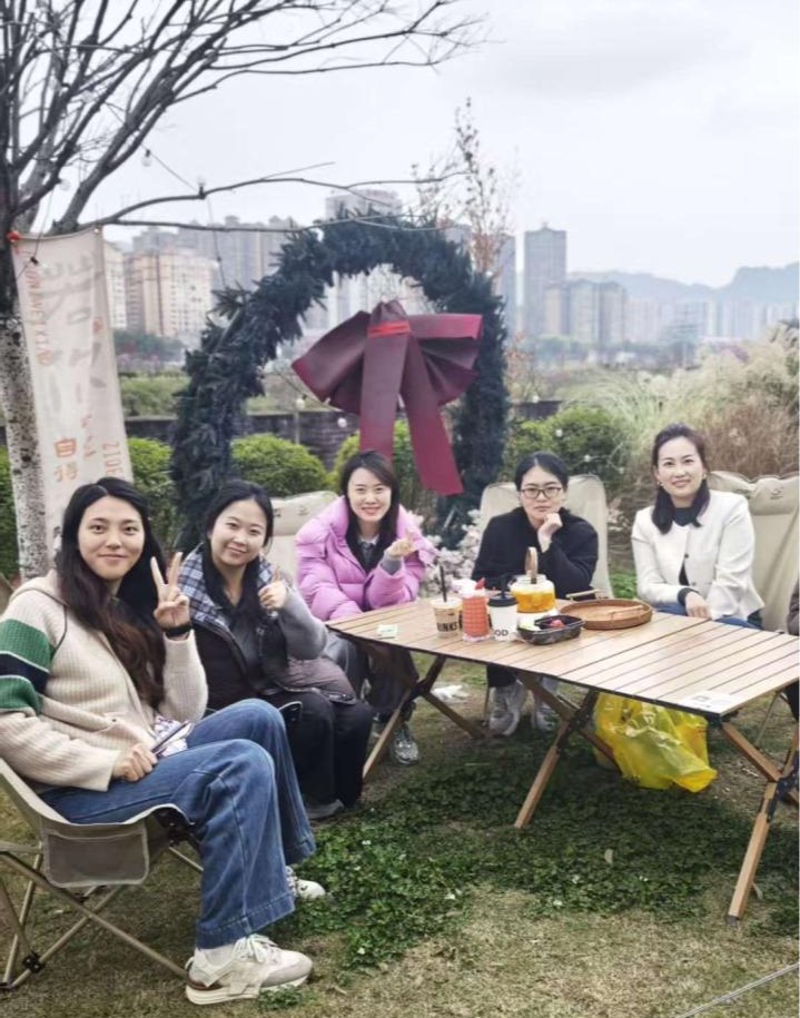 活动当日,女教师们暂别三尺讲台,走进雅安雨城区的青山绿水间。在工会小组的精心策划下,大家以户外露营的形式开启了一场身心放松之旅。搭帐篷、围炉煮茶、漫步林间。平日里伏案耕耘的老师们卸下疲惫,在鸟语花香中感受大自然的治愈力量。