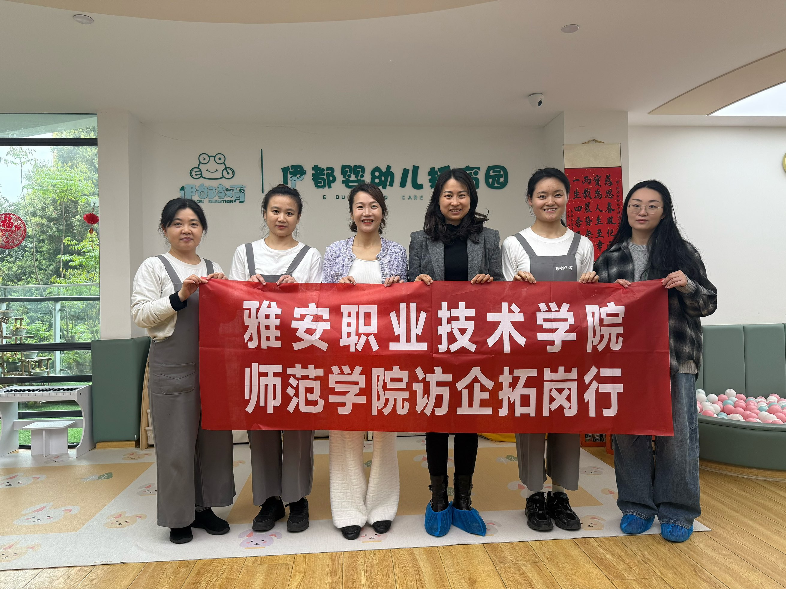 2026年3月27日至30日,雅安职业技术学院师范学院院长冯良亮、副院长黄丹、专业教师郭靓薇一行赴成都市开展访企拓岗专项调研,先后走访成都城投菁芙蓉托育服务有限公司、成都市第捌伊都托育服务有限公司、黉门社区托育中心(成都华希智慧托育),围绕实习基地建设、校企合作及就业岗位拓展等内容进行深入交流。